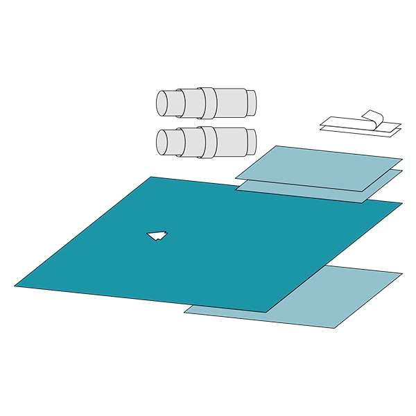 - Forpakning: Sæt med 2 afdækningsstykker 45 x 75 cm, 1 hulstykke 150 x 150 cm, 1 bordafdækning 75 x 100 cm, 2 slangeovertræk 8 x 120 cm, 2 OP-tape 9 x 24,5 cm.