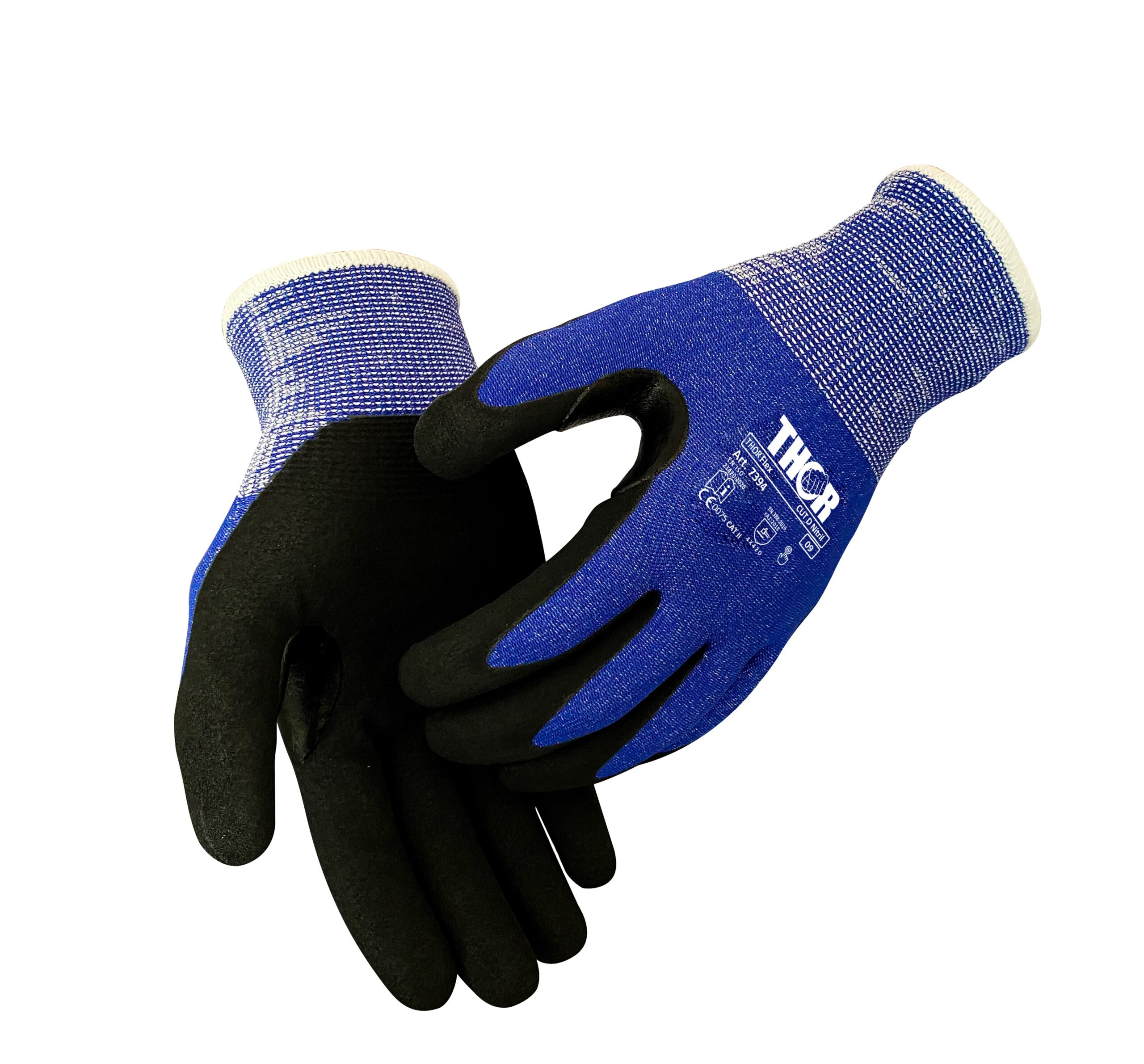 THOR Flex Vinter Cut D fingerdyppet nitrilhandske – skærefast og foret vinterhandske i blå. Ideel til kolde og krævende arbejdsopgaver. 1 par.