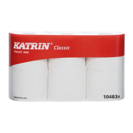 Toiletpapir, Katrin 104834, 2-lags, 48 m, 42 stk. – Katrin Classic 400 toiletpapir er et blødt og stærkt 2-lags papir til både private og offentlige miljøer med høj trafik.